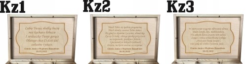 2. Naklejona tabliczka z wybranymi przez Ciebie życzeniami (istnieje możliwość zmiany treści dedykacji na własny tekst i możliwość umieszczenia podpisu od kogo są życzenia.)