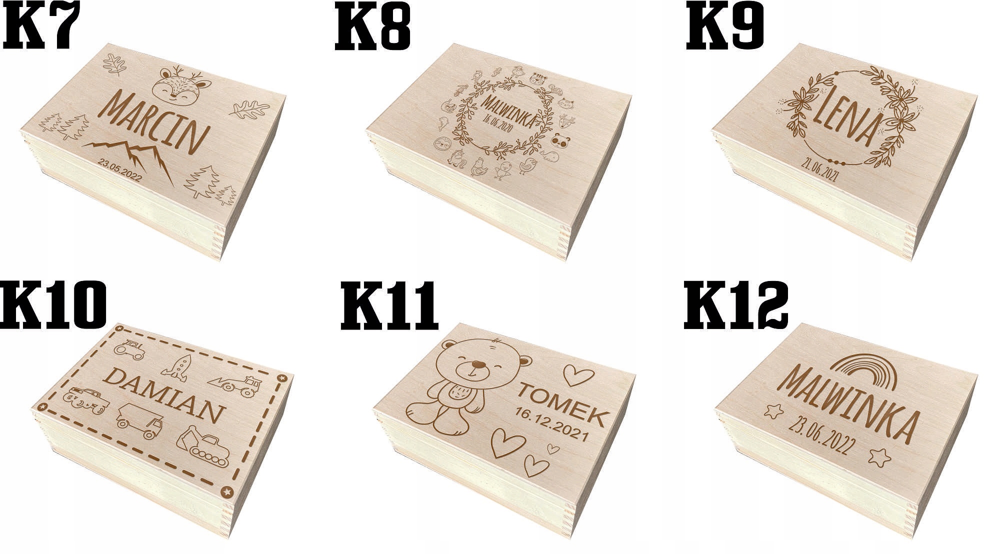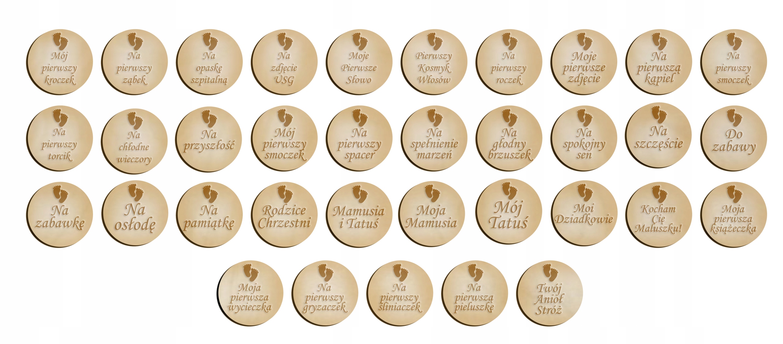 3. 6szt kółek grawerowanych do wyboru z 35 podanych poniżej - jeśli nie będzie wybrane, wybieramy losowo te które najczęściej są zamawiane