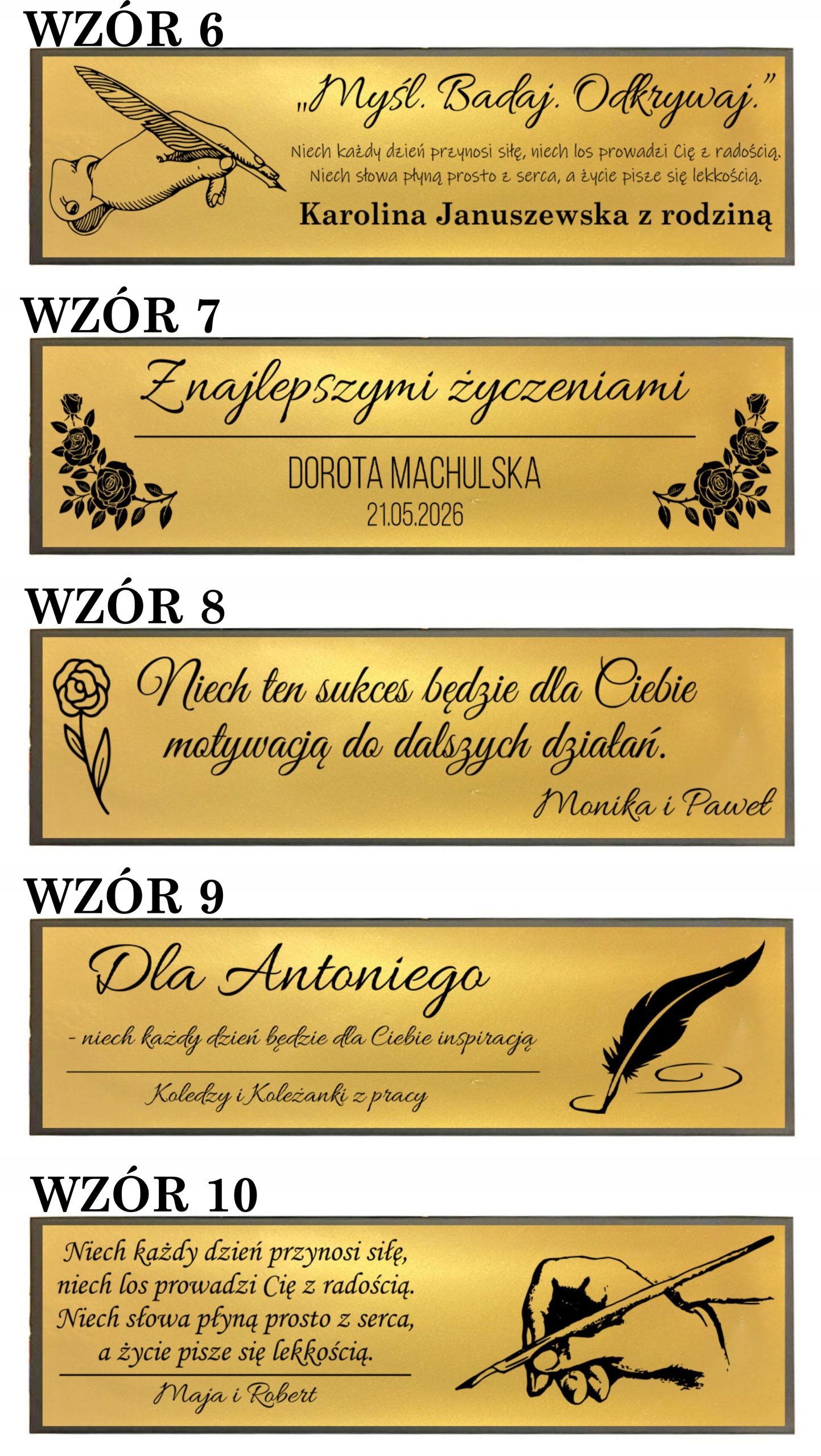 - Wybierz tekst na złotą tabliczkę oraz wpisz dane do zmiany w życzeniach (podpis, dedykacja)