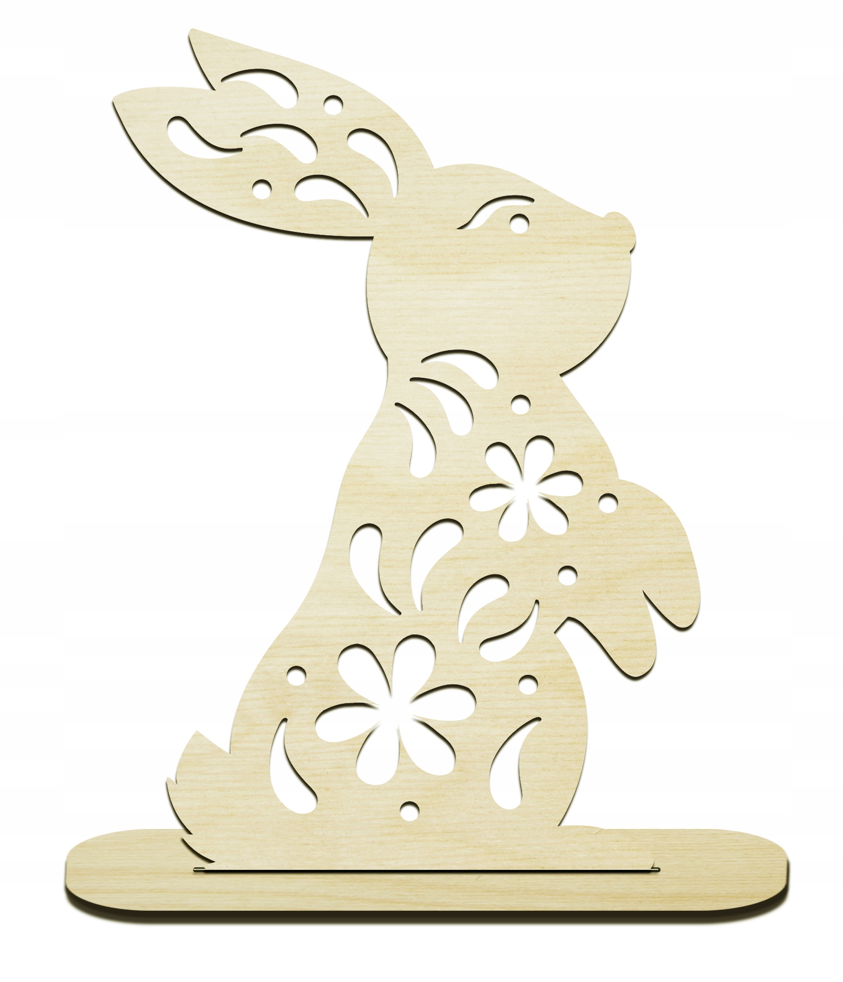 - Drewniany królik / zając na podstawce – ażurowa, dekoracyjna forma