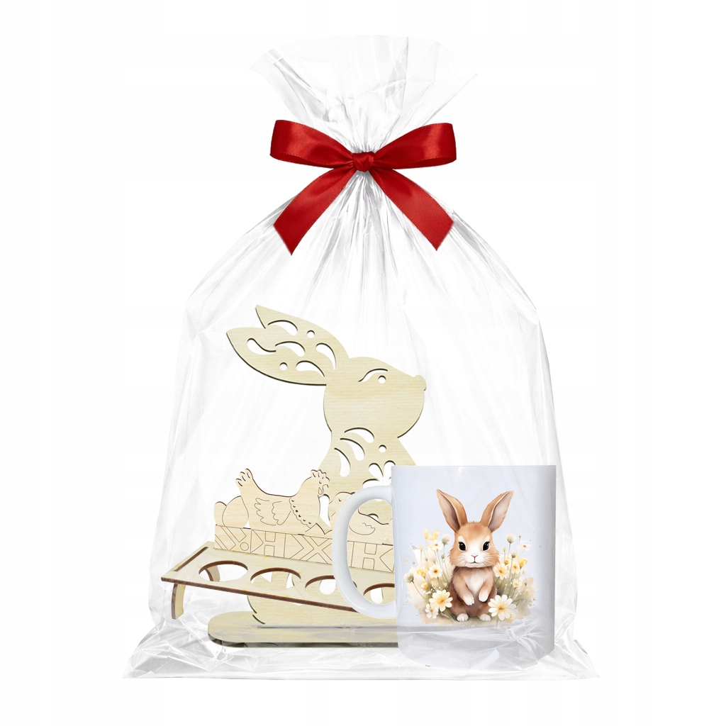 Gotowa paczka to zestaw na Wielkanoc i elegancki prezent lub upominek świąteczny. W komplecie znajduje się kubek z motywem wielkanocnym, drewniany ażurowy królik / zając na podstawce oraz stojak na jajka – pisanki. Estetyczny zestaw idealny jako prezent wielkanocny do domu lub na świąteczny stół.
