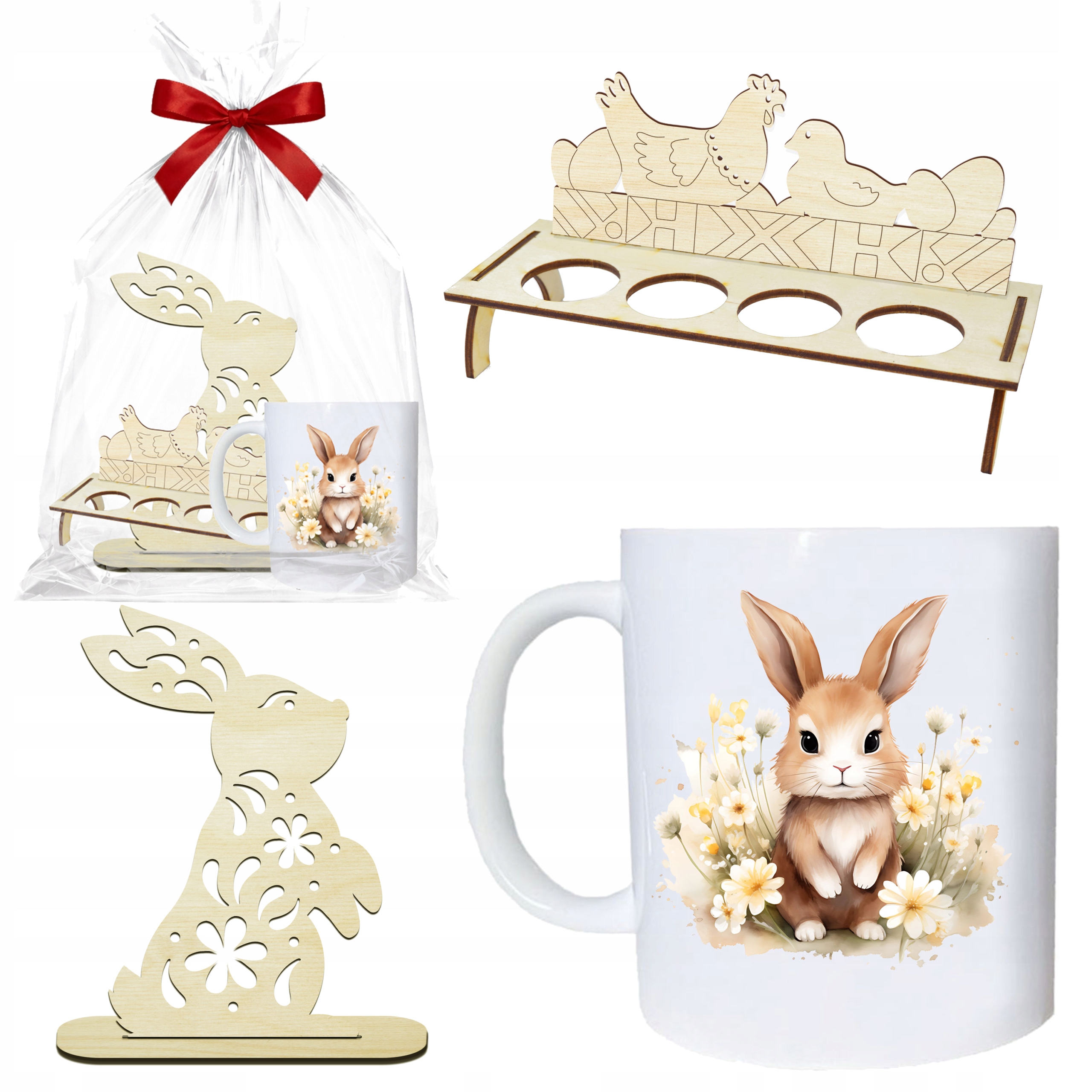 GOTOWA PACZKA zestaw na WIELKANOC prezent upominek kubek stojak na jajka