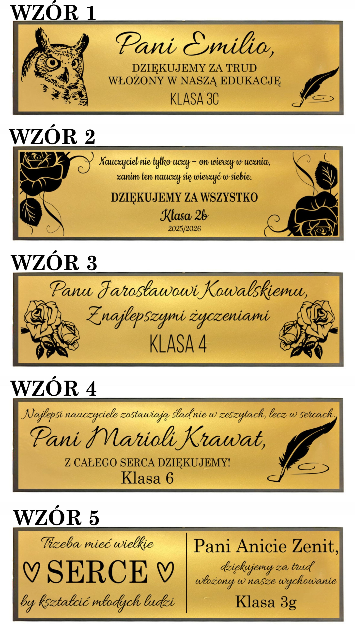 - Wybierz tekst na złotą tabliczkę oraz wpisz dane do zmiany w życzeniach (podpis, dedykacja)