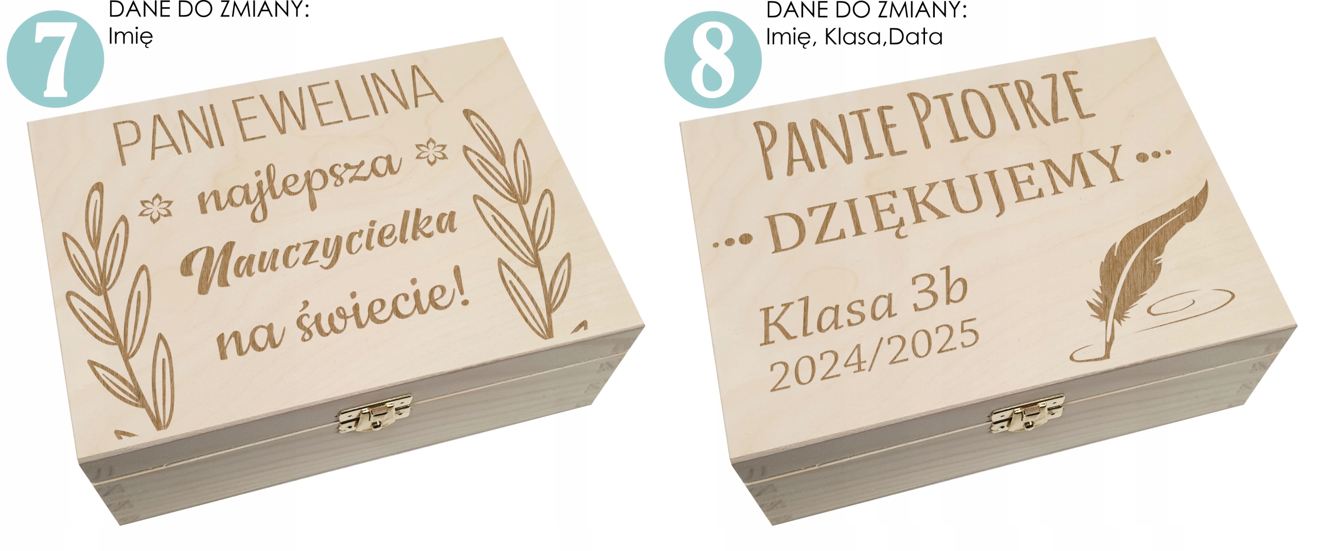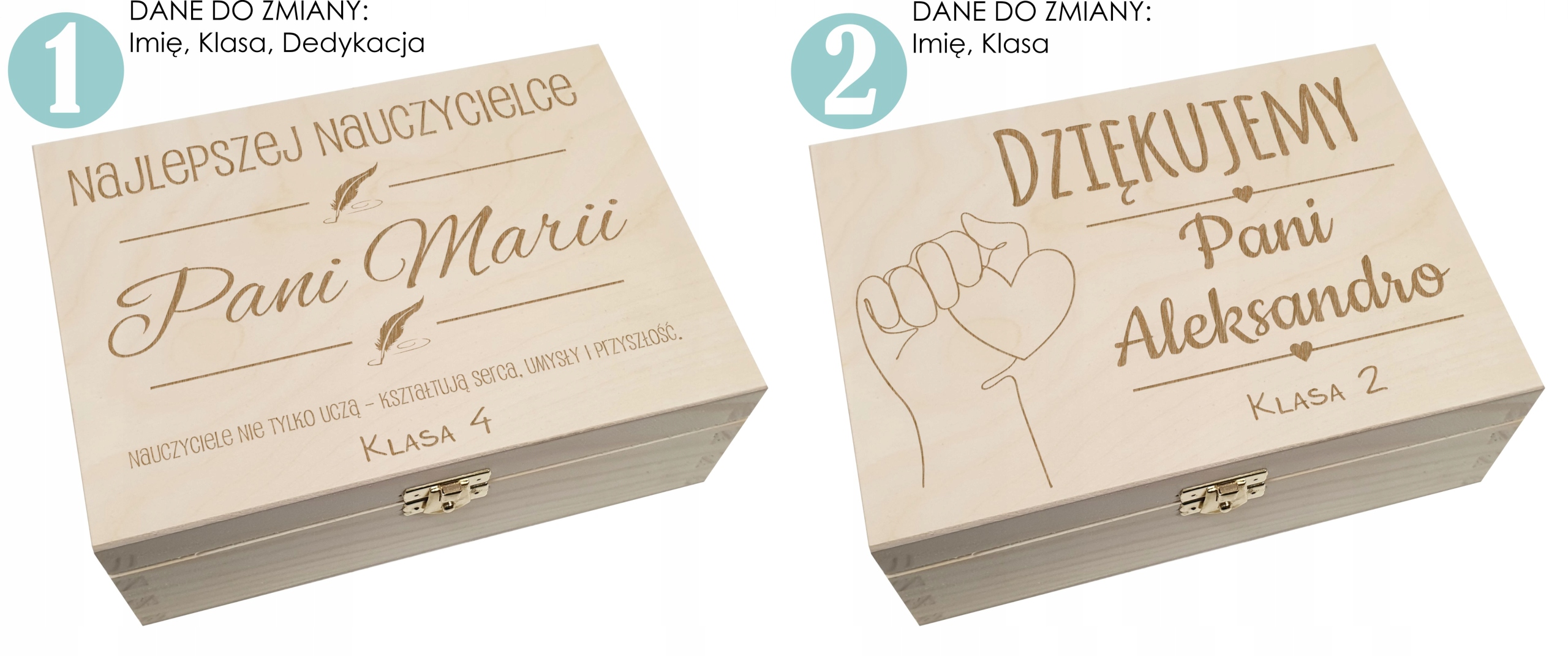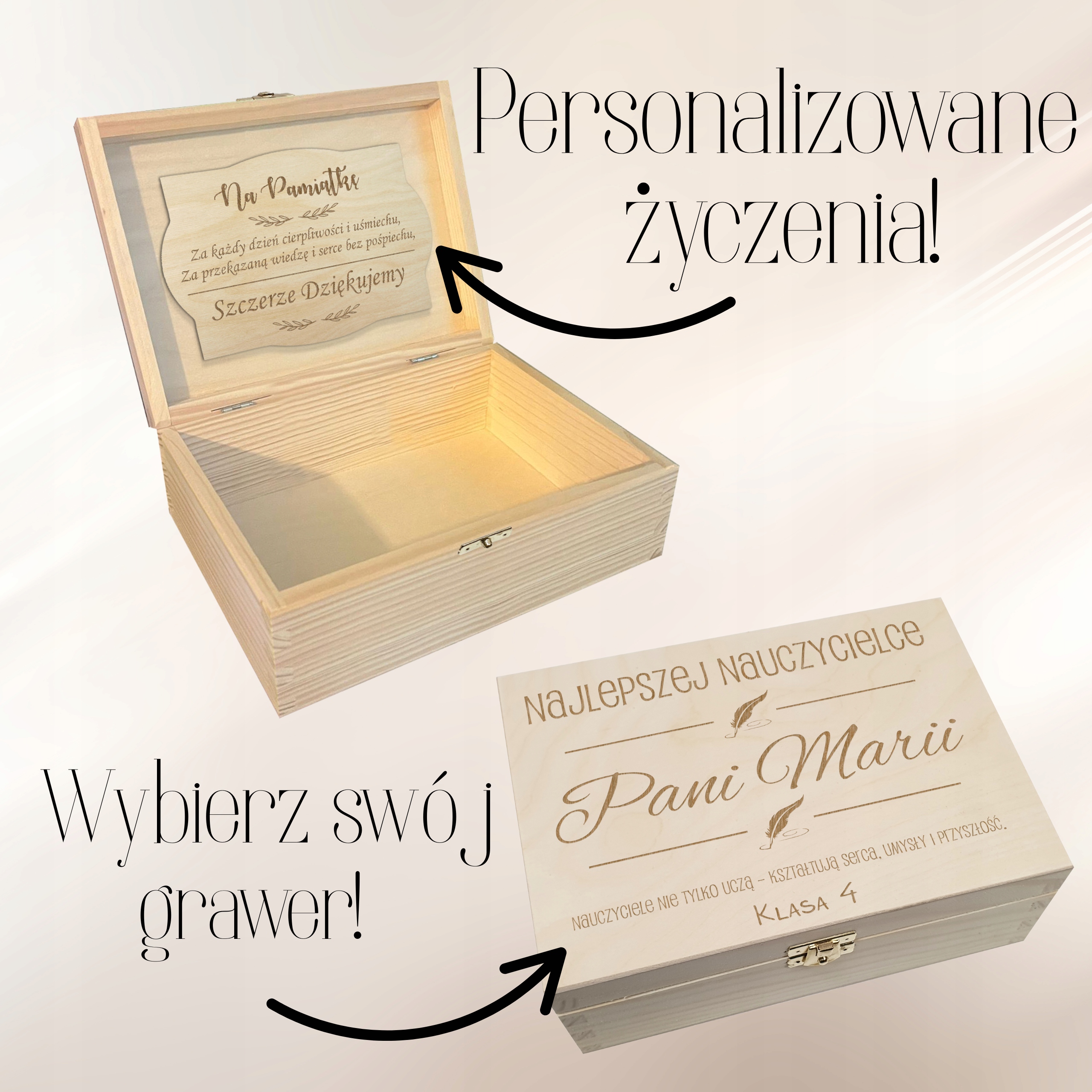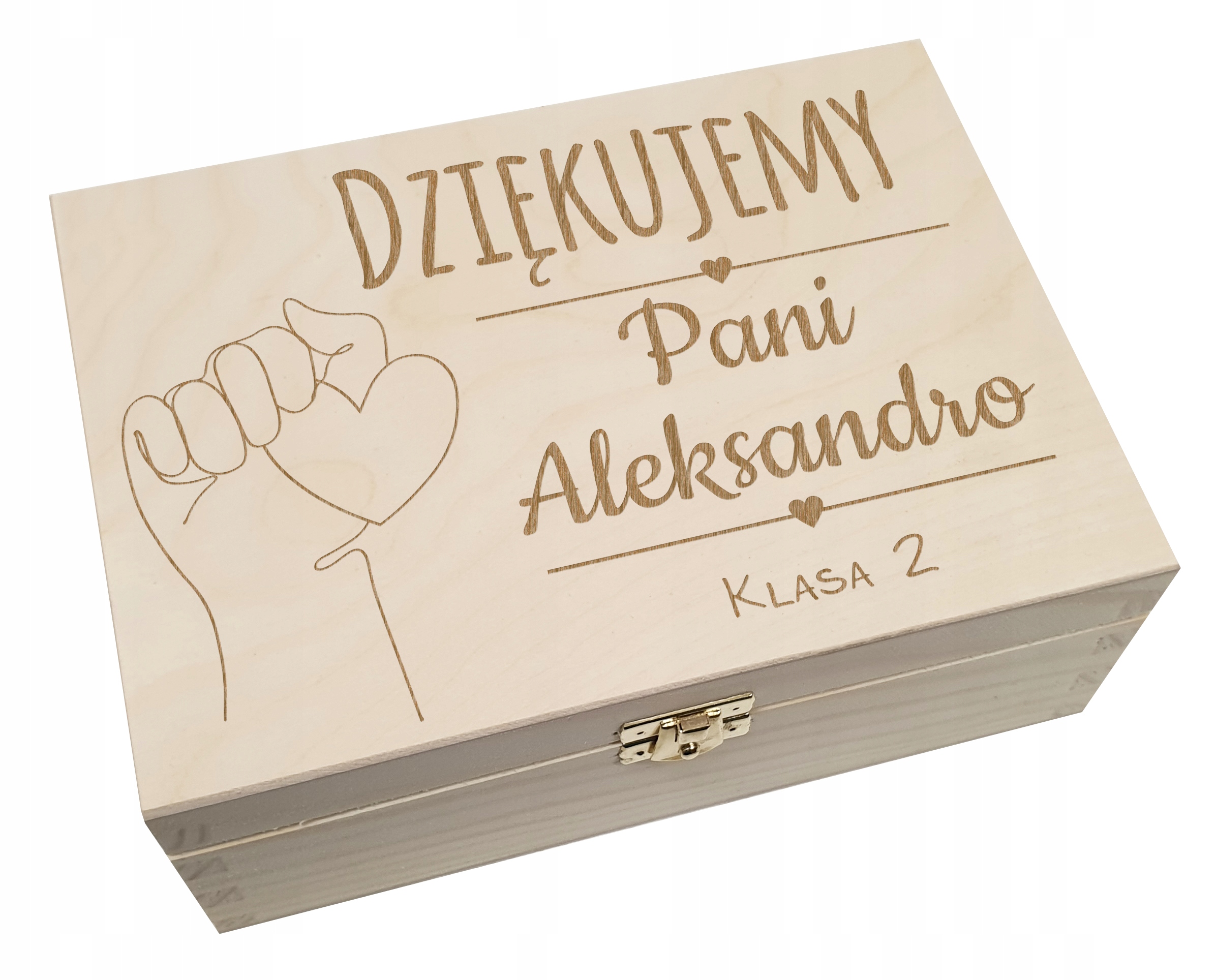 To solidne, estetyczne pudełko z zapięciem wykonane z naturalnego drewna to zarówno praktyczne opakowanie na prezent, jak i samodzielny upominek dla nauczyciela. Dzięki możliwości personalizacji – m.in. dodania imienia lub dedykacji – staje się ono oryginalną i osobistą pamiątką na lata.