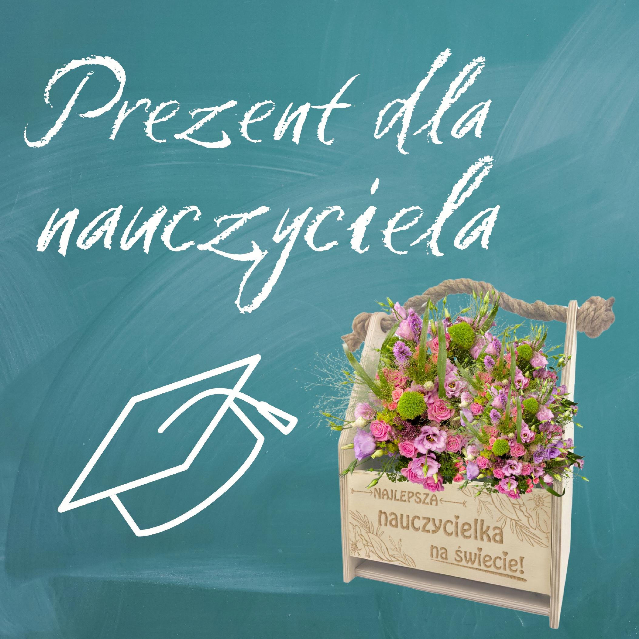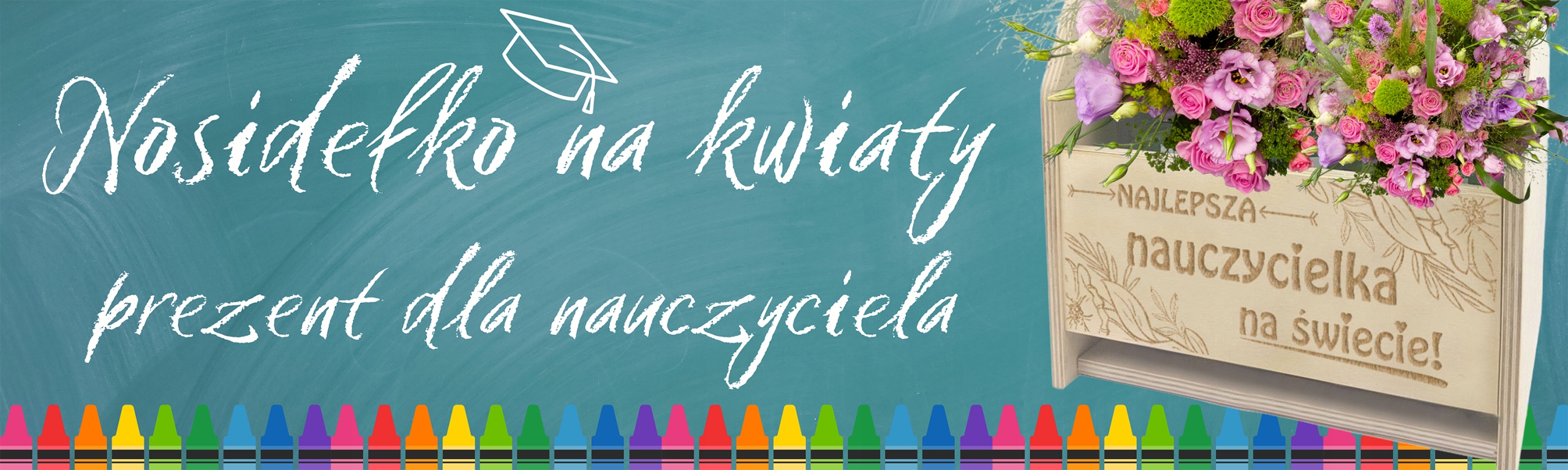 Prezent podziękowanie dla Nauczyciela zakończenie roku – drewniane nosidełko na kwiaty, skrzynka z grawerem