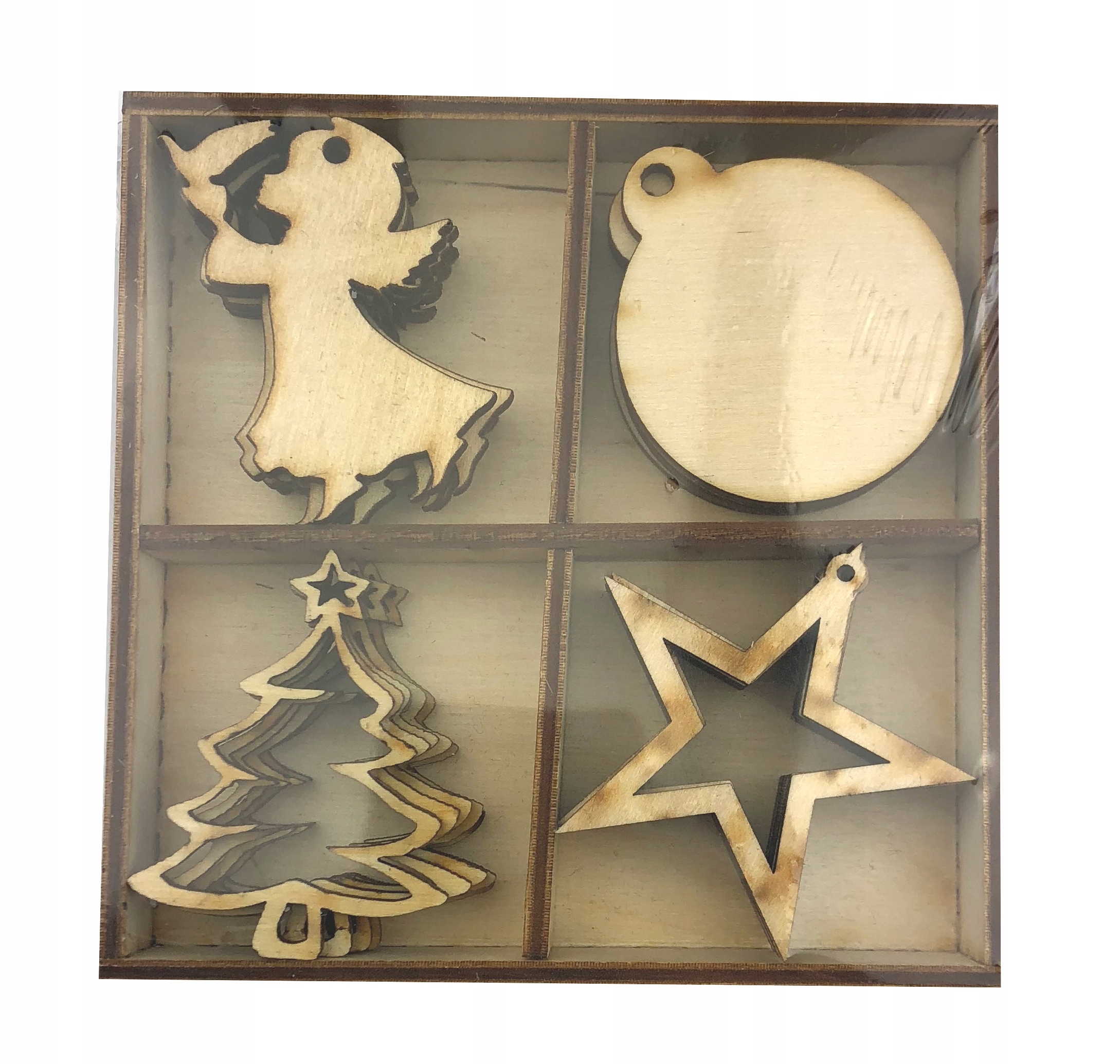 Precyzyjnie wykonane drewniane ozdoby Świąteczne o wysokości 5cm z ekologicznego materiału jakim jest drewno(sklejka).